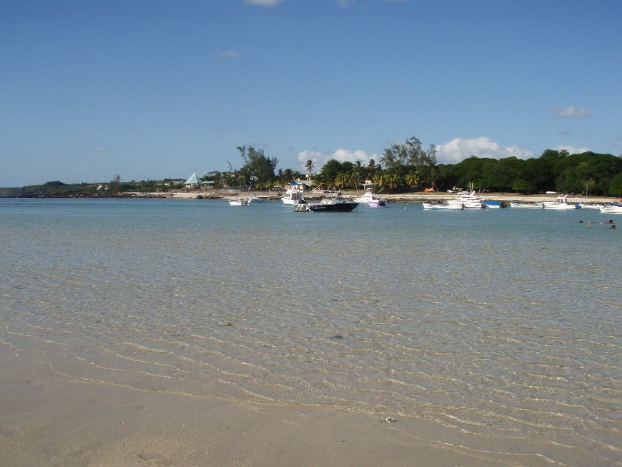Strand bei Ebbe, im Hintergrund das Hotel Klondike