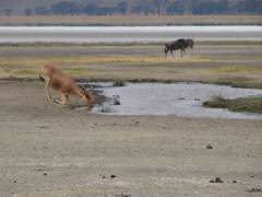 und Grantgazellen ist zu beobachten. Ein einsamer Sekretär sucht nach Schlangen.
