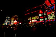 Gegen Mitternacht machen wir uns auf den Heimweg durch ein gleißendes Lichtermeer. Der Tankwart, bei dem wir noch mal